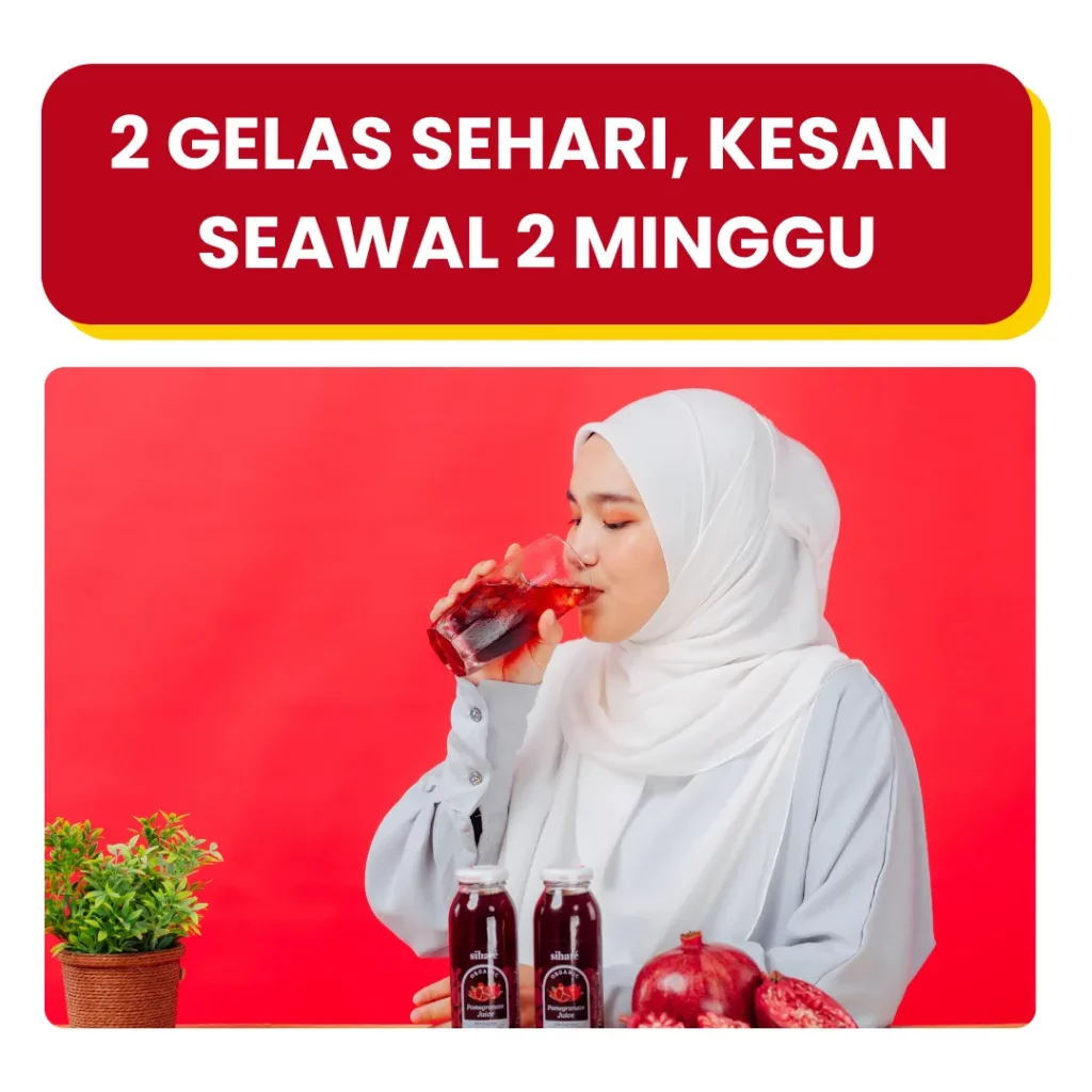 1 botol jus delima 250ml akan habis dalam 2.5 hari jika diminum 50ml pada waktu pagi dan 50ml pada waktu malam.
