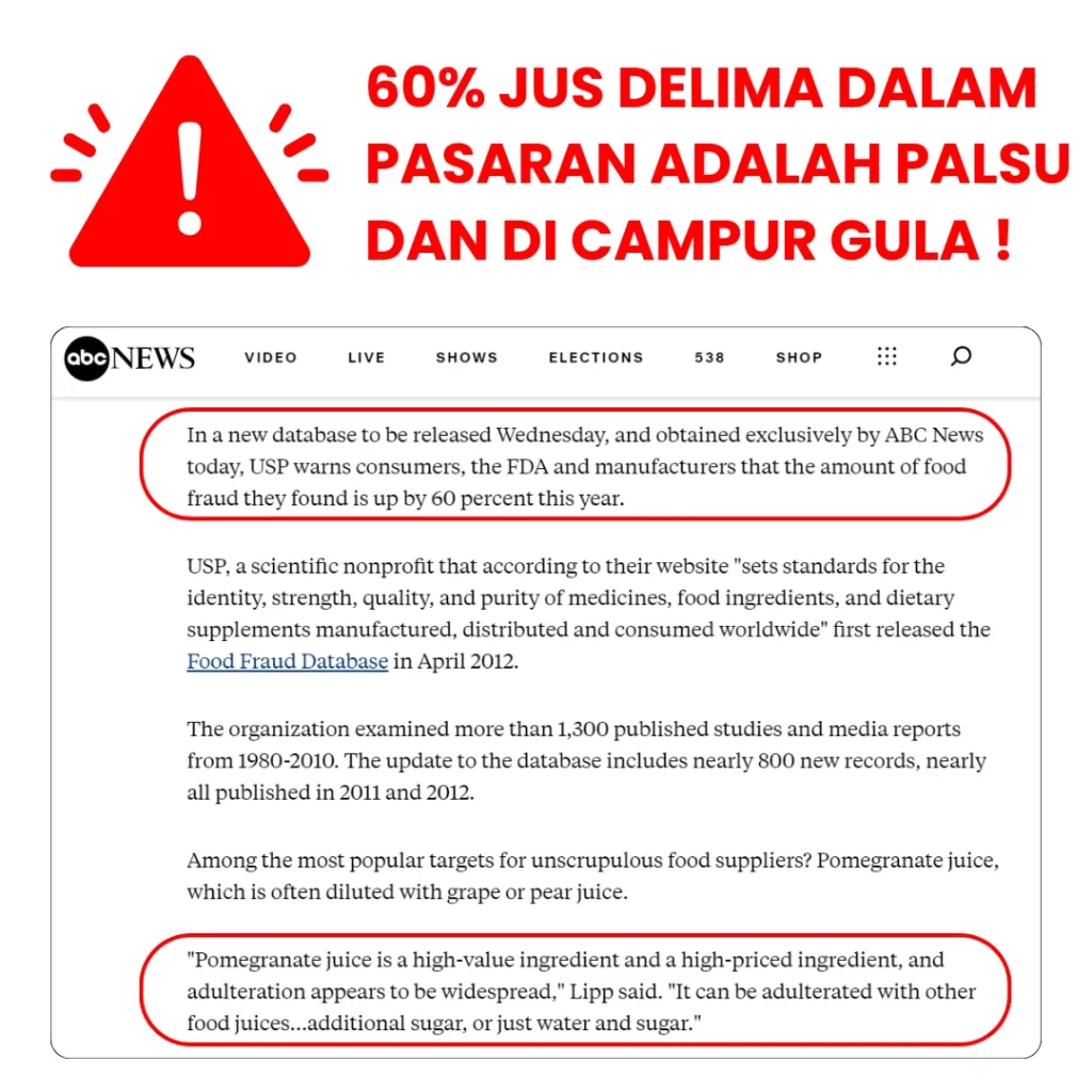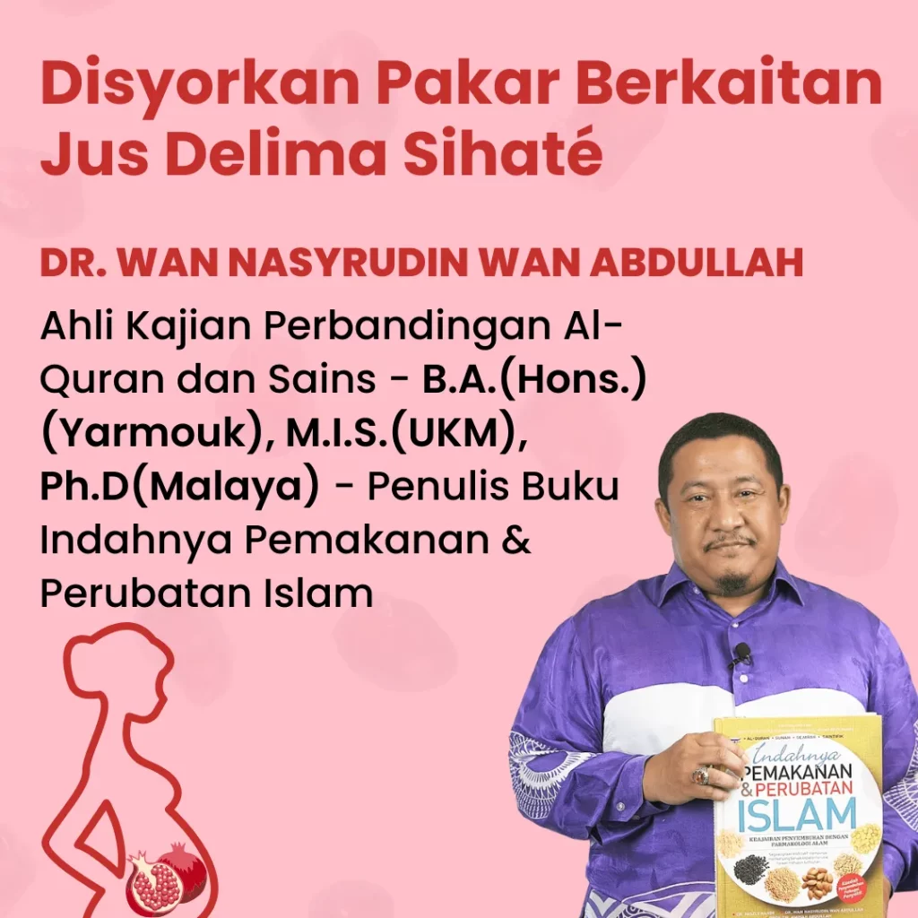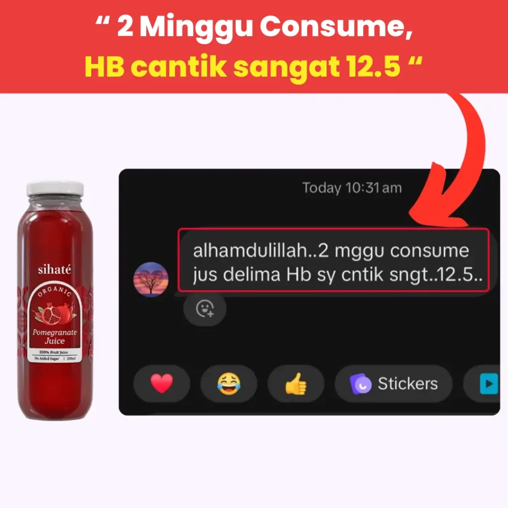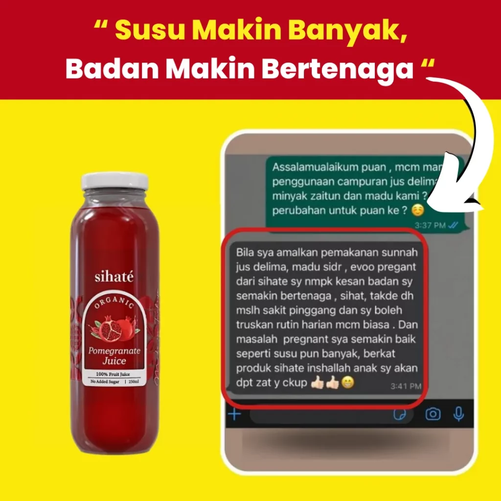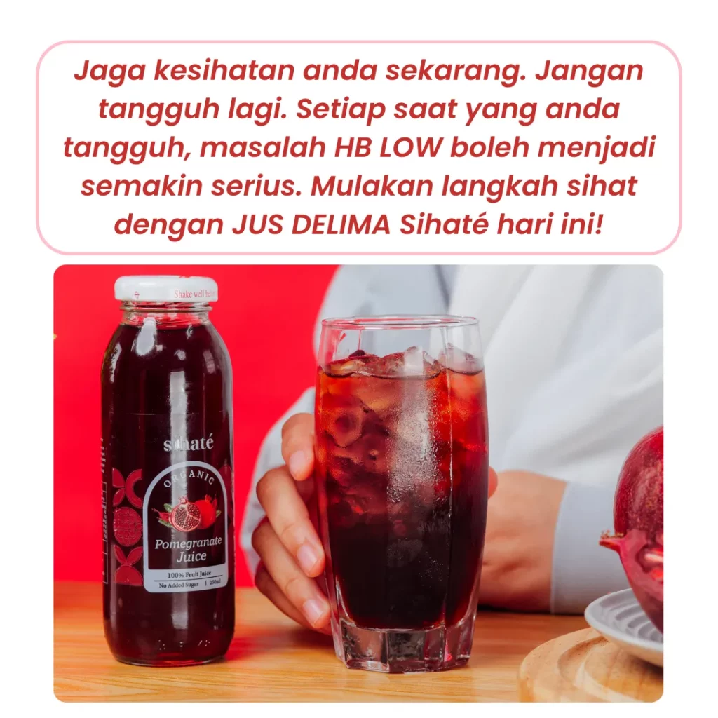 Semua produk keluaran Sihaté adalah asli dan organik tanpa sebarang campuran pewarna, pengawet dan bahan-bahan lain. Anda boleh menyemak semua sijil akuan bagi Jus Delima keluaran Sihaté pada pautan ini.