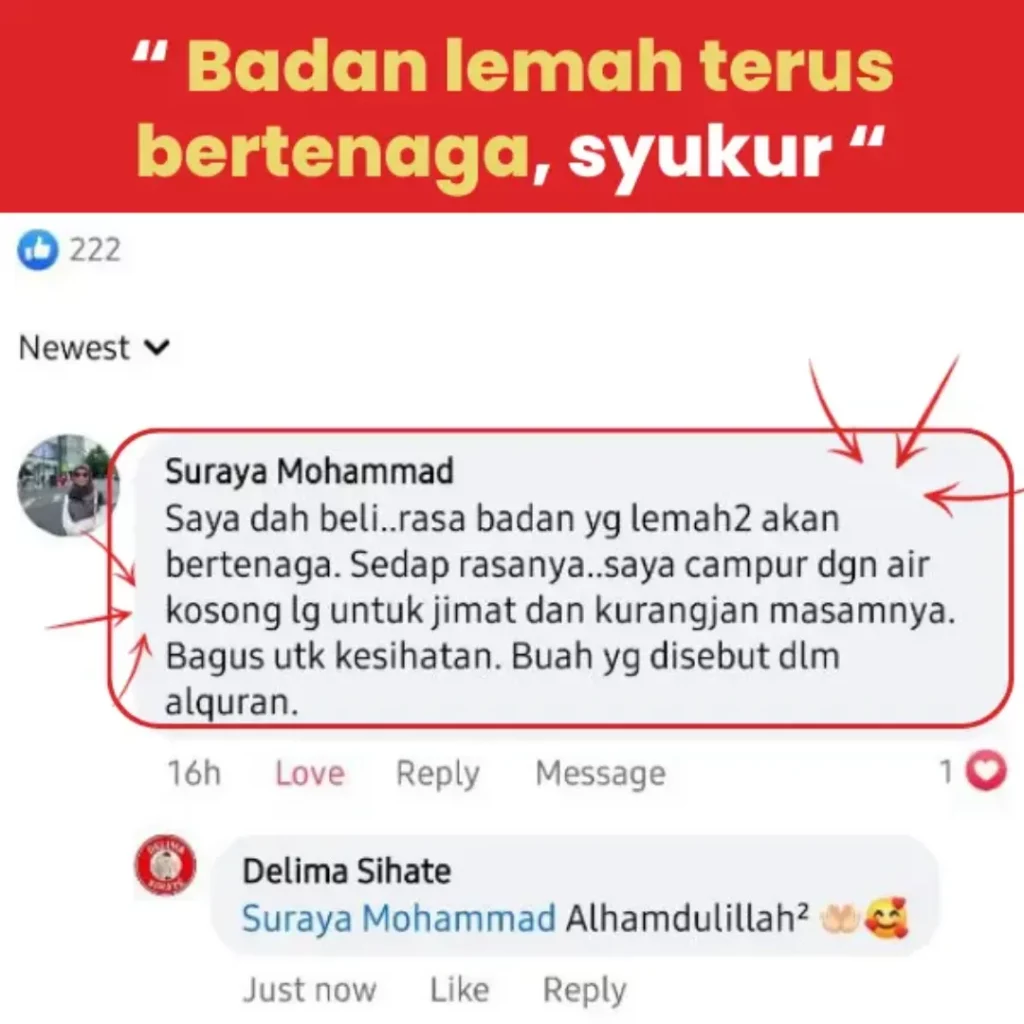 FREE 1 BOTOL JUS DELIMA, OLIVE OIL 10ML & WOVEN BAG!